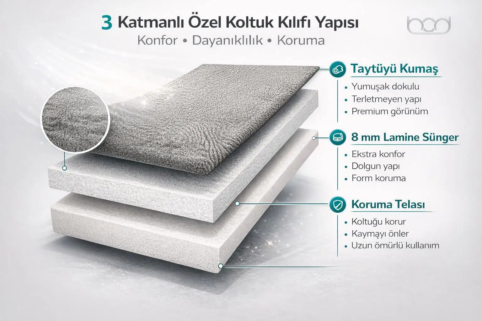 8 mm Kalınlık: Yüksek yoğunluklu dolgusu sayesinde konforlu bir oturum sağlar, uzun yolculuklarda rahatlığı artırır.